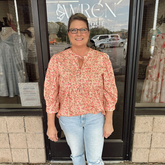 French Floral Tie Top